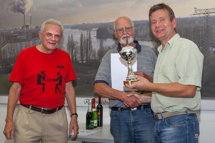 Ehrung des Blitzmeisters (Gruppe A) von links Horst Kaiser, Klaus Meyer-Roll und Matthias Schöwel