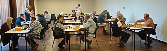 Nach der Ankunft in Dordrecht, im Postillon-Hotel, und einem ausgiebigen Lunch, wurde ab 14:00 Uhr an 10 Brettern Schach gespielt. Die Paarungen und Ergebnisse im Einzelnen: