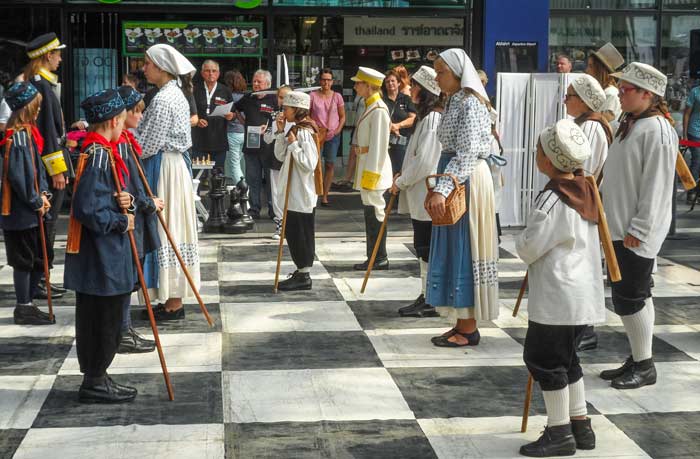 Die Ströbecker begeisterten bei drei weiteren Auftritten mit Tänzen und einer Lebendschachpartie des bisher einzigen deutschen Schachweltmeisters Emanuel Lasker gegen den Österreicher Johann Hermann Bauer aus dem Jahr 1889.