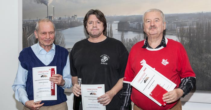 Die Sieger in der Schnellschachmeisterschaft von links 3. Dr. Günter Albinus, Sieger Jürgen Schmid und 2. Ulli Fitzke.