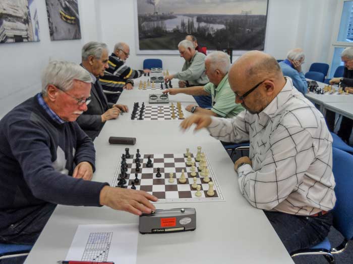 Wie bereits im Vorjahr spielten wir in zwei Gruppen um die Wanderpokale, Urkunden und Preise. In der A-Gruppe spielten wir mit 5 Schachfreunden doppelrundig und in der B-Gruppe mit 8 Spielern in einfacher Runde. Hilmar und Hans-Joachim setzten sich schnell ab und gewannen ungeschlagen in den Gruppen. Der Kampf um die Plätze blieb jedoch bis zur letzten Runde sehr spannend. In der A-Gruppe gewann Jürgen Rollwitz im direkten Vergleich gegen Ulrich Fitzke den 2. Platz. In der B-Gruppe hatten vor der letzten Runde gleich fünf Schachfreunde die Möglichkeit, den 2. Platz zu erringen. Überraschend setzte sich Klaus Meyer-Roll vor Gerhard Bluhm durch. Beide strahlten vor Glück. Aber nicht nur sie hatten Spaß an dem unterhaltsamen Schachabend.