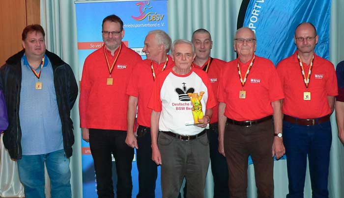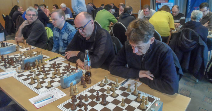 Ehrung des Deutschen Meisters von links: GM Robert Rabiega, FM Rainer Kleeschätzky,