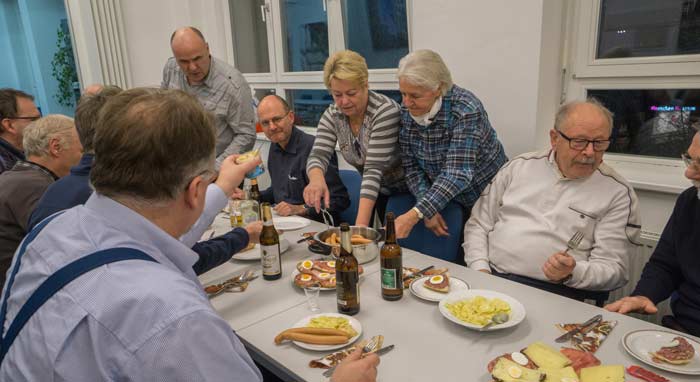 Nach der Ehrung der Sieger entspannten wir bei einem Imbiss, den unsere Spielerfrauen Brunhilde, Annemarie, Carla und Christa wieder köstlich vorbereitet hatten.