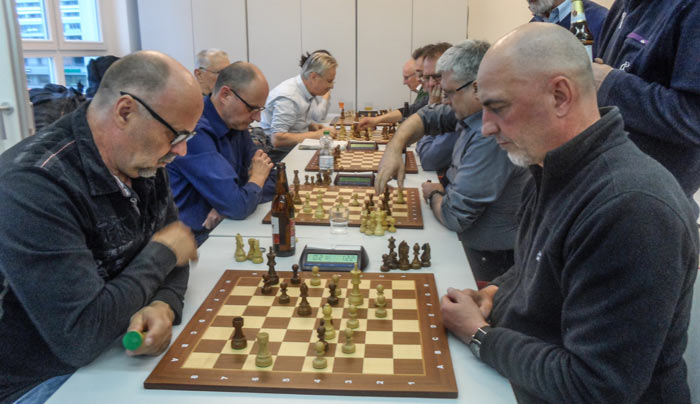 vorne von links: Detlev Kuhne gegen den Sieger der A Gruppe Andreas Woschech
