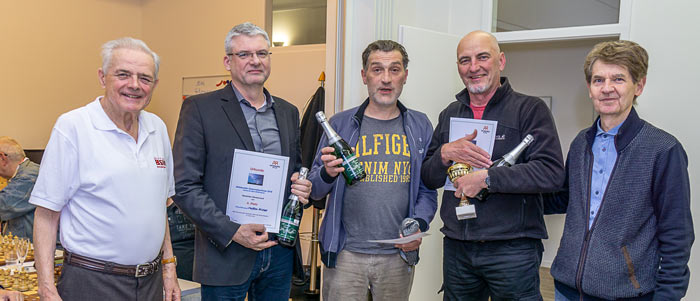 von links: Horst Kaiser, Steffen Michel (3.), IM Drazen Muse (2.), Sieger Andreas Woschech