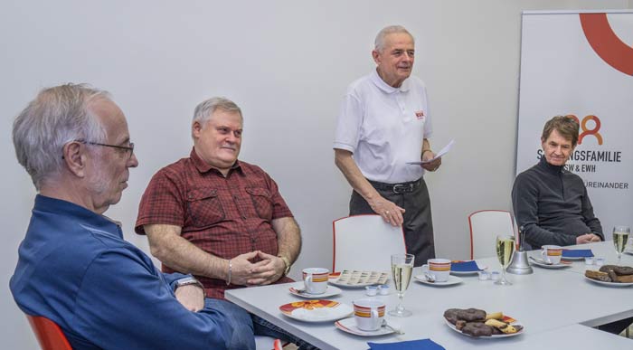 Am 15. Januar 2020 begrüßten wir im Kreis von 31 Schachfreunden mit einem Glas Sekt sowie mit Kaffee und Kuchen das neue Jahr. Den Kuchen hatten unsere Spielerfrauen Christa, Brunhilde und Carla gebacken. Es gab von allen Spielern dafür ein großes Lob. Unter Beifall begrüßten wir Norbert Gottschlag, Leiter KOS Berlin der Stiftungsfamilie. Er dankte der Schachgruppe für die langjährige erfolgreiche Arbeit und würdigte Klaus Meyer‐Roll, Prof. Dr. Peter Strauß und Horst Kaiser mit herzlichen Worten und kleinen Sachgeschenken. Michael Kleinert, unserem Spielleiter und Mannschaftsleiter der 4. Mannschaft gratulierte ich herzlich zu seinem Geburtstag, dankte ihm für seine ehrenamtliche Tätigkeit und wünschte ihm alles Gute.